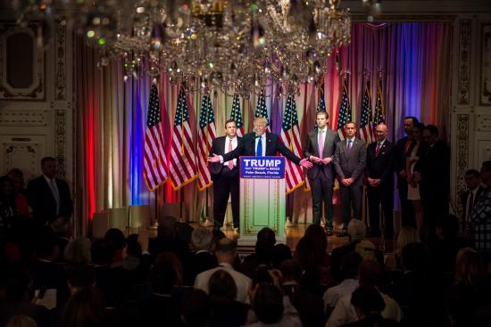 [caption id="attachment_240" align="alignnone" width="550"] PALM BEACH, FL - MARCH 1: Republican presidential candidate Donald Trump speaks, alongside New Jersey Gov. Chris Christie, left, during...